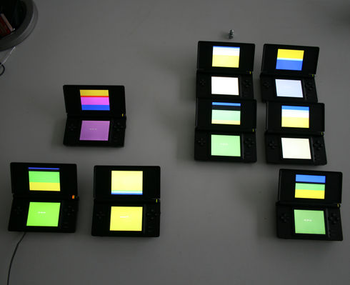 The artwork is based on an analytic system assigning the basic units of time – hours, minutes and seconds - to the primary colours of light - red, green and blue. This association leads to a process of colour surfaces filling the space over time. This results in overlapping colour surfaces, areas where the secondary colours yellow, cyan and magenta appear.